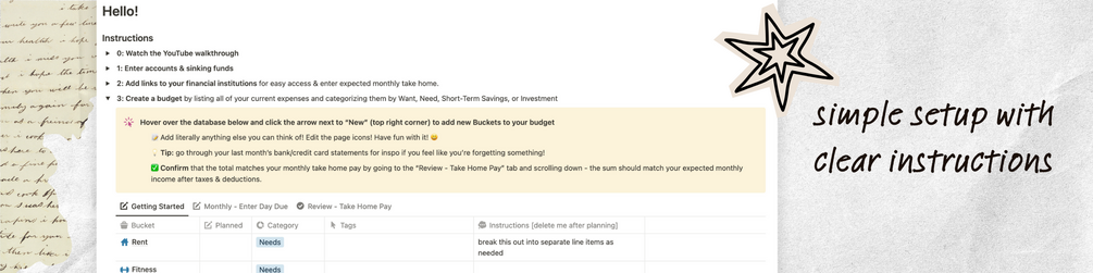 An upgraded version of my Budget Tracker Freebie & the tool I've been using and refining for the last year to manage my money. I've been working to turn this into a template because it has been by biggest asset in saving, investing, and just all around having a better idea of where my money is going. If you're overwhelmed by all of the spreadsheet-based budgeting templates and want something a bit more customizable, this is for you!